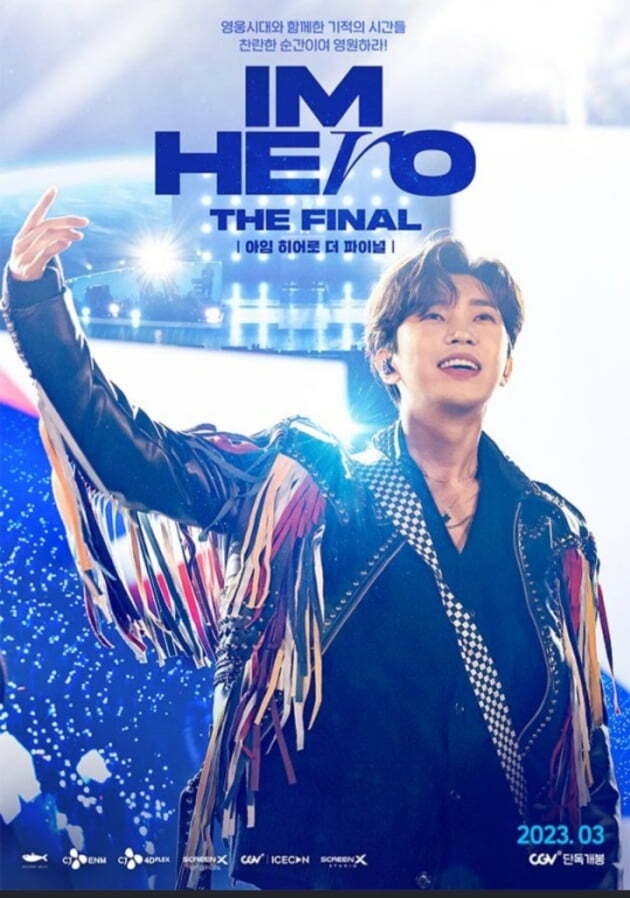 지난달 1일 국내 개봉한 ‘아임 히어로 더 파이널’은 지난해 12월 고척 스카이돔에서 열린 임영웅의 전국 투어 앙코르 공연 ‘아임 히어로(IM HERO)’를 담은 공연 실황 영화다. 콘서트 현장에서는 볼 수 없었던 연출 요소와 임영웅의 인터뷰, 무대 비하인드 스토리도 추가된 영화로 24만여 명의 관객들을 극장으로 불러모았다.