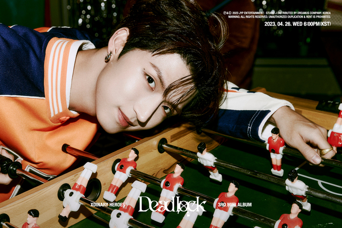 엑스디너리 히어로즈는 오는 26일 미니 3집 'Deadlock'(데드록)과 타이틀곡 'Freakin' Bad'(프리킹 배드)를 발표하고 컴백한다. JYP는 11일 공식 SNS 채널에 주연의 개인 티저를 최초 공개한 데 이어 12일 0시 6분과 오후 12시 6분 두 차례에 걸쳐 준한의 개인 티저 5종을 게재했다.