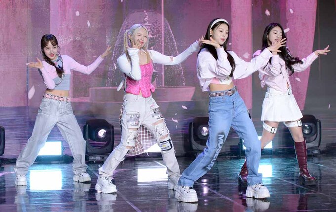 그룹 피프티 피프티 (새나 , 아란, 키나, 시오)가 13일 청담동 일지아트홀에서 진행된 기자간담회에 참석하고 있다.