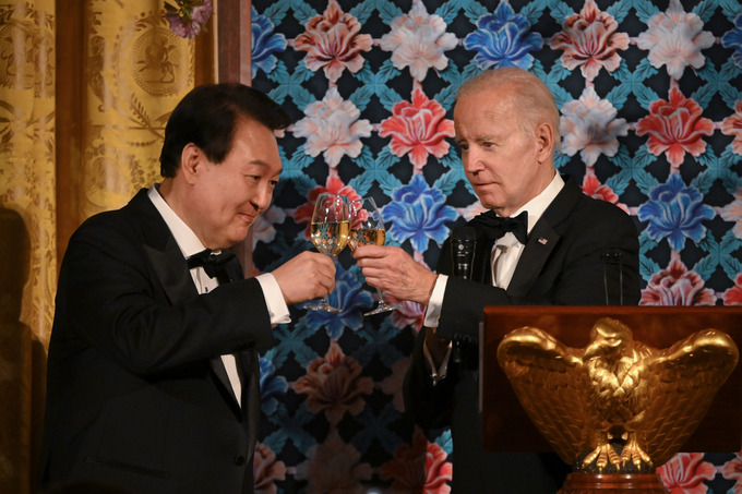 윤석열 대통령이 26일(현지시각) 백악관 이스트룸에서 열린 국빈만찬에서 개인 애창곡을 불러 화제가 되었다.