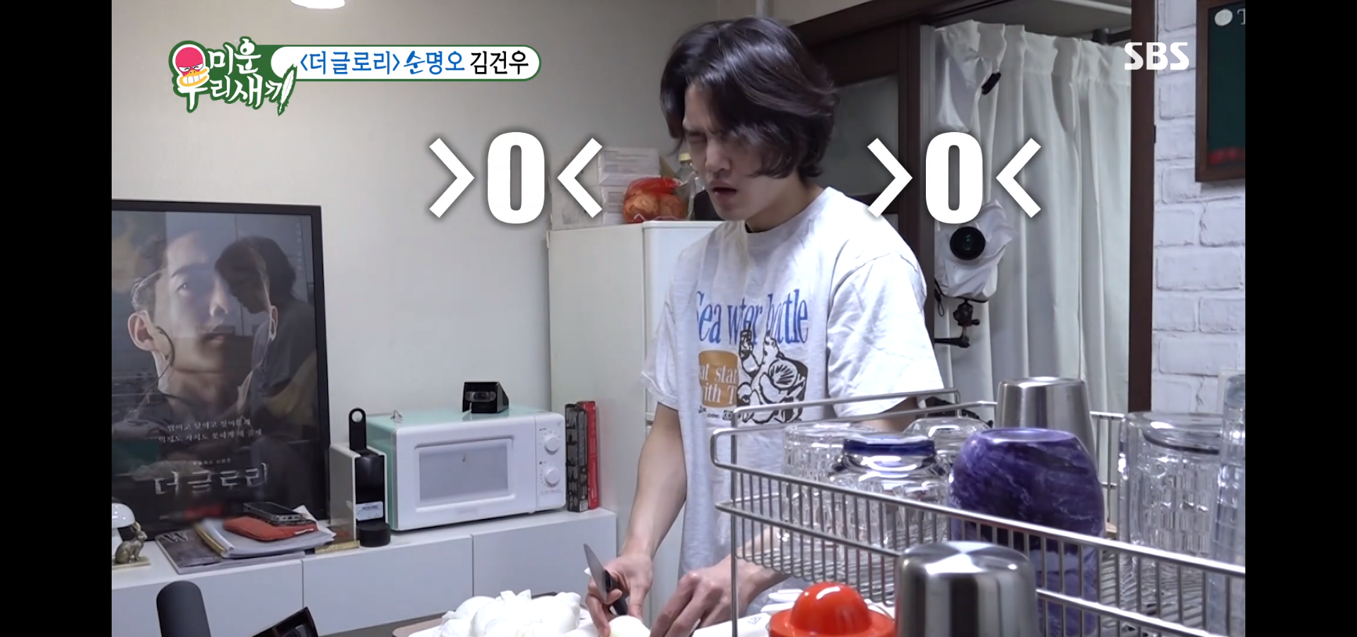 이날 김건우는 화제가 된 드라마 ‘더 글로리’ 손명오의 모습과는 달리, 양파를 썰며 매워하는 등 순둥하기 짝이 없는 ‘순명오’의 모습을 보여 눈길을 끌었다.