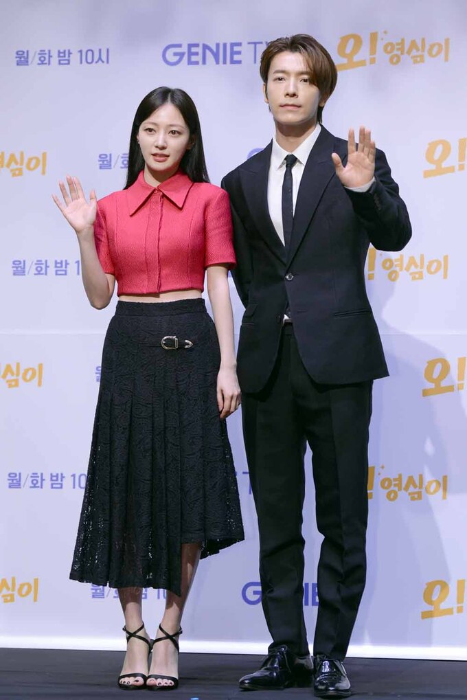 배우 송하윤(왼쪽)과 이동해가 15일 라마다 서울 신도림 호텔 그랜드 볼룸에서 열린 지니TV 오리지널 '오! 영심이' 제작발표회에 참석하고 있다.