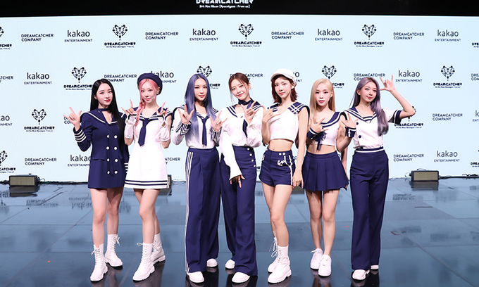 24일 오후 건국대학교 서울캠퍼스새천년관대공연장에서 그룹 드림캐쳐의 여덟 번째 미니앨범 ‘아포칼립스 : 프롬 어스(Apocalypse : From us)’ 발매 기념 쇼케이스가 열렸다. 이 자리에서 드림캐쳐는 이번 앨범의 타이틀곡 ‘본보야지(BONVOYAGE)’와 수록곡 ‘투 유(To. You)’ 라이브 무대를 최초 공개했다.