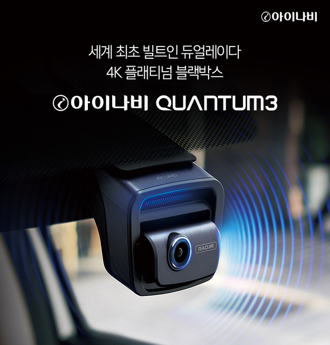 팅크웨어는 세계 최초로 빌트인 타입의 듀얼 레이다가 탑재된 4K플래티넘 ‘아이나비 퀀텀3(QUANTUM3)’을 출시한다.