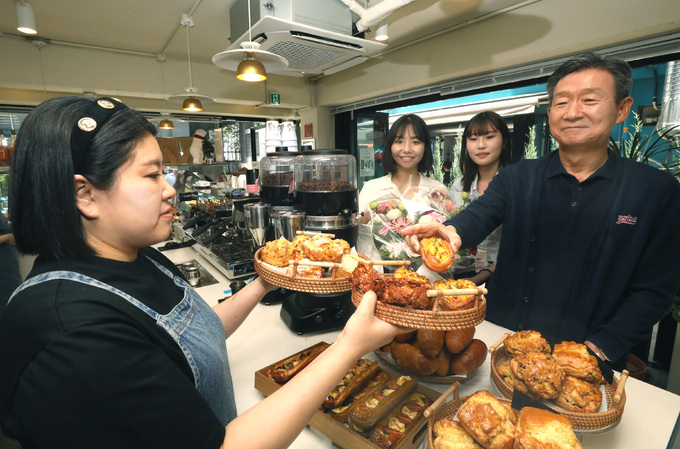 LG유플러스 황현식 대표가 25일 ‘U+우리동네멤버십-용산 한강대로편’ 제휴 매장을 방문해 상품을 구매하고 소상공인 사장님을 응원했다.