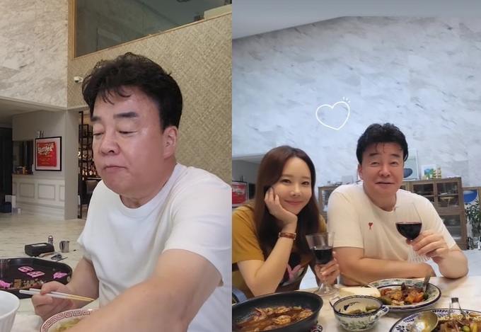 공개된 사진은 남편 백종원과 함께 식사를 하며 단란한 시간을 보내는 그의 모습. 같은 날 소유진은 “강한 남자의 국수 먹는 방법 ㅎㅎ”이라는 글과 함께 백종원이 밥을 먹는 영상을 게재하며 남편에 대한 애정을 드러냈다.