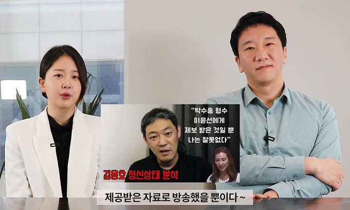 28일 유튜브 채널 ‘노종언 김다예 진짜뉴스’에는 ‘김용호의 어마어마한 의리! 박수홍 김다예 부부를 향하여 25개허위사실 31차례 허위비방 방송을 일삼은 범죄자 김용호와 허위제보자 공범 이윤선’이라는 제목의 영상이 게재됐다.