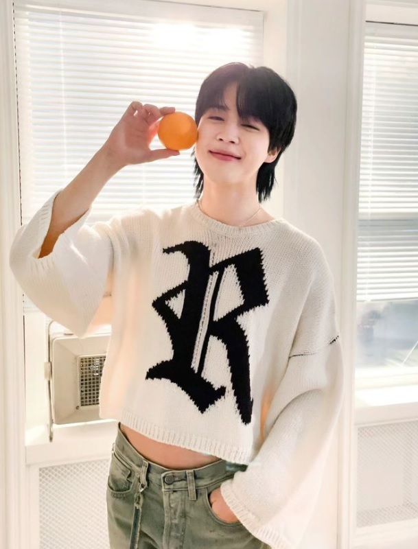 4일 지민은 개인 SNS를 통해 “귤”이라는 글과 함께 여러 장의 사진을 게재했다.
