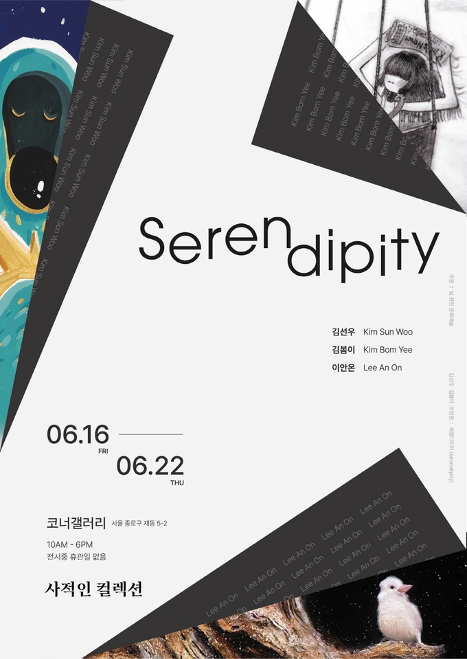 널위한문화예술은 컬렉팅 전시 ‘김선우 김봄이 이안온 : 세렌디피티(serendipity)’를 삼청동 코너 갤러리에서 개최한다고 15일 밝혔다.