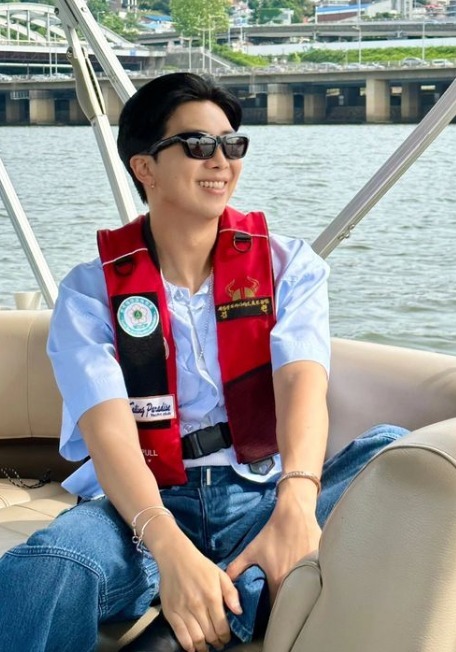 25일 RM은 자신의 SNS에 “수상택시”라는 멘트와 함께 여러 장의 사진을 게재했다. 사진 속 RM은 수상택시에 탄 채 여유로운 웃음을 지어 보이고 있다.