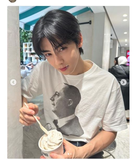 30일 차은우는 자신의 인스타그램에 아이스크림 이모티콘과 함께 여러 장의 사진을 공개했다.