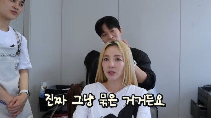 그러자 산다라박은 “다 그런 줄 아시는데 진짜 그냥 묶은 거다”라며 해명했다. 그는 “제 두피가 좀 고생을 한 거다”라고 전했다. 기우쌤이 “난 안에 뭐 철사나 뭔가가 들어갔을 줄 알았는데”라며 신기해하자 산다라박은 “진짜 완전 튼튼한 끈으로 계속 돌려가지고 묶은 거라 그때 눈물도 많이 흘렸다, 너무 아파가지고”라고 당시를 회상했다.