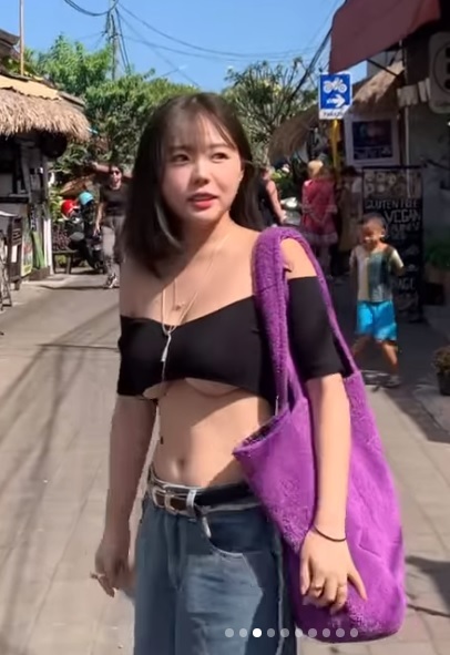 공개된 게시물은 발리 여행 중인 홍영기의 모습. 검은색 크롭톱을 입고 언더붑을 노출한 과감한 그의 패션이 시선을 모은다.