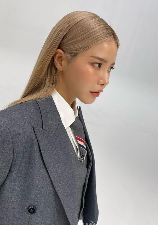 7일 솔라는 자신의 SNS에 “데칼이후로 처음 입어보는,,,”이라는 멘트와 함께 여러 장의 사진을 공유했다. 사진 속 솔라는 단정한 수트를 풀세트로 착용한 채 카리스마 넘치는 매력을 뽐내고 있다. 날카로운 솔라의 눈빛이 시선을 사로잡는다.