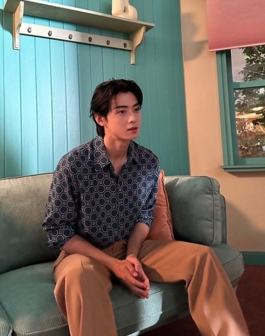 공개된 사진은 광고 촬영 현장 속 그의 모습. 이마를 드러낸 채 화려한 패턴의 셔츠와 베이지색 바지를 매치한 스타일링을 선보인 차은우는 섹시하면서도 화려한 비주얼을 자랑해 시선을 모은다.
