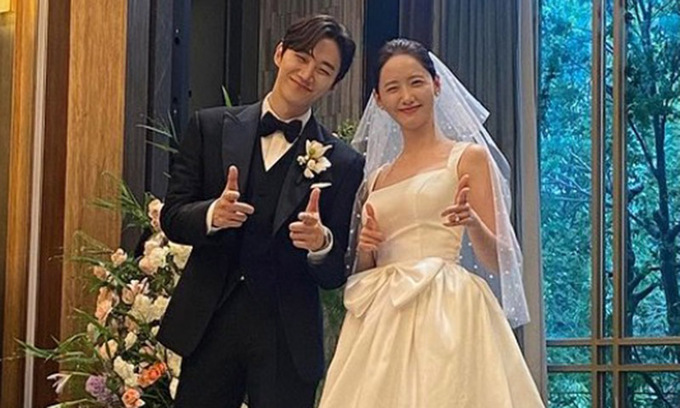 공개된은 사진은 JTBC 드라마 ‘킹더랜드’의 결말인 결혼식 비하인드. 이준호 등 ‘킹더랜드’ 배우들과 다정하게 포즈를 취하는 임윤아의 모습이 시선을 모은다. 특히 웨딩드레스를 입고 청순하면서도 우아한 비주얼을 뽐내는 그의 자태가 보는 이들로 하여금 감탄을 자아낸다.