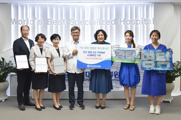 박은정 회원은 “평소 기부를 통해 선한 영향력을 전파하고 있는 스타의 행보에 맞춰 탁스튜디오 회원들도 나눔의 가치를 실천하기 위해 노력하고 있다”며 “이번 기부를 통해 치료에 지친 환자와 보호자, 그리고 우리의 건강한 삶을 위해 최선을 다해주고 있는 의료진에게 힘이 됐길 바란다”고 전했다.