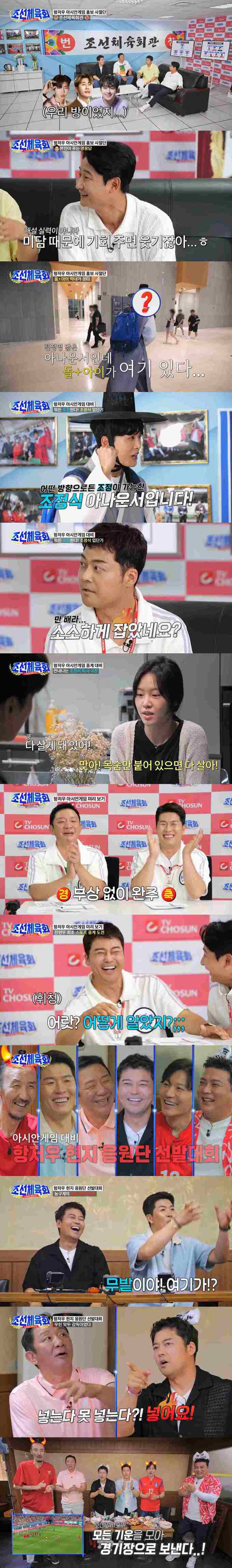 본격 ‘항저우 아시안게임 모드’로 돌입한 리얼 스포츠 예능 ‘조선체육회’가 ‘뉴페이스’로 S사 아나운서 출신 조정식을 받아들이며 중계 인력을 보강했다.