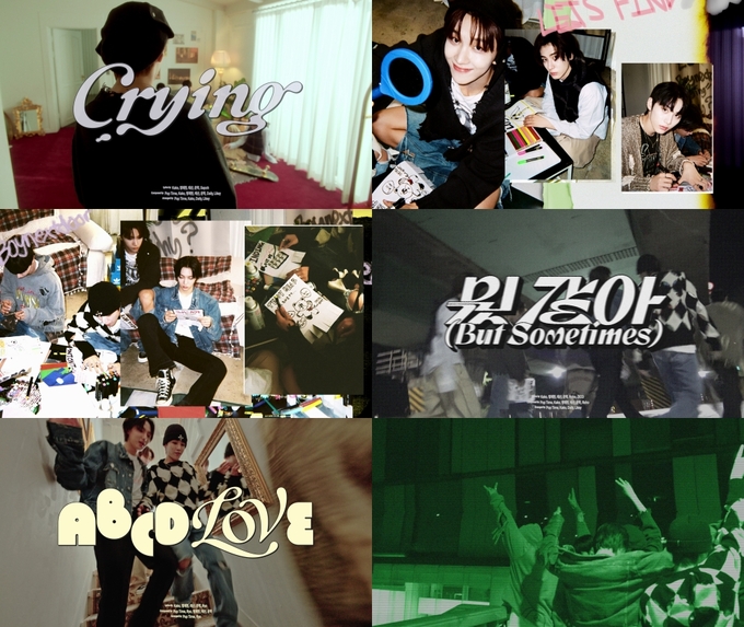 빈티지한 사운드가 귀를 사로잡는 ‘Crying’에서는 “두 번 다시 사랑은 못해 나 / 진짜 돌아버릴 것 같단 말이야”라는 가사처럼 서툰 첫사랑을 끝내고 힘든 시간을 보내는 소년들의 공허한 감정을 느낄 수 있다. 또 다른 수록곡 ‘ABCDLOVE’는 칠한 멜로디에 감성적인 보컬을 얹어 떠난 이의 빈자리가 차차 익숙해지기를 바라는 마음을 경쾌한 그루브로 표현한 곡이다. 명재현, 태산, 운학은 ‘Crying’과 ‘ABCDLOVE’의 작사와 작곡 크레디트에도 이름을 올렸다.