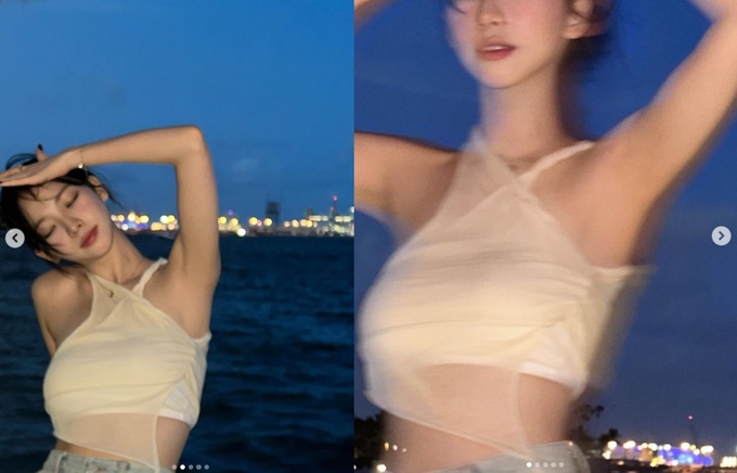공개된 사진은 그의 일상. 비현실적인 미모와 함께 흰색 튜브탑을 입고 여리여리한 어깨라인과 늘씬한 허리를 자랑하는 카리나의 자태가 시선을 모은다.