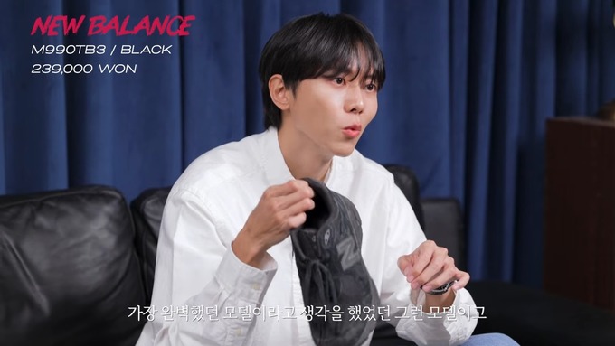 영상 속 주우재는 “얘를 빼놓을 수가 없어요”라며 “이게 이제 역대 990 라인 중에 제일 예쁘다는 평을 받고 있는 대표 모델이고 역시 메이드 인 usa가 적혀 있죠”라며 239000원 대의 신발을 소개했다. 그는 “요거는 올검 신발 중에 가장 완벽했던 모델이라고 생각을 했었던 그런 모델”이라며 거듭 칭찬했다.