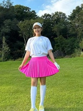 지난 9일 송가인은 자신의 SNS에 “일도 즐겁게 쉬는 것도 즐겁게 ! 너무 너무 편한 골프화 신고 101 개 ㅋㅋㅋ 모두 모두 즐거운 주말 보내기 !”라고 적으며 여러 장의 사진을 공개했다. 사진 속 송가인은 깜찍한 핑크 스커트에 흰색 티, 그리고 흰색 캡모자를 매치하여 사랑스러운 매력을 뽐내고 있다.