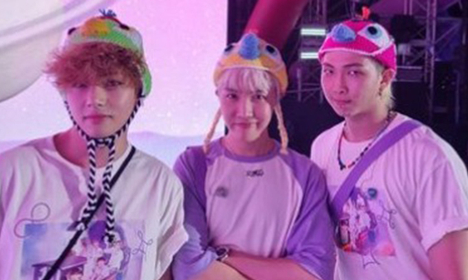 12일 방탄소년단 뷔는 자신의 SNS에 한 장의 사진을 공유하며 “남준쓰 생축 당신은 포크고 나는 스프임”이라고 적었다. 사진 속 뷔는 제이홉, RM과 함께 유쾌한 모자를 쓴 채 장난스러운 표정을 짓고 있다.