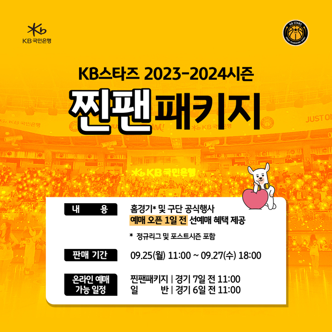 찐팬패키지는 홈경기 입장권을 하루 먼저 예매할 수 있는 선예매 혜택과 연고지 가맹점(KB스타즈샵) 할인 등을 포함한 KB국민은행의 시즌 멤버십 프로그램으로, 지난 시즌에는 판매 개시 5분 만에 매진을 기록했다.