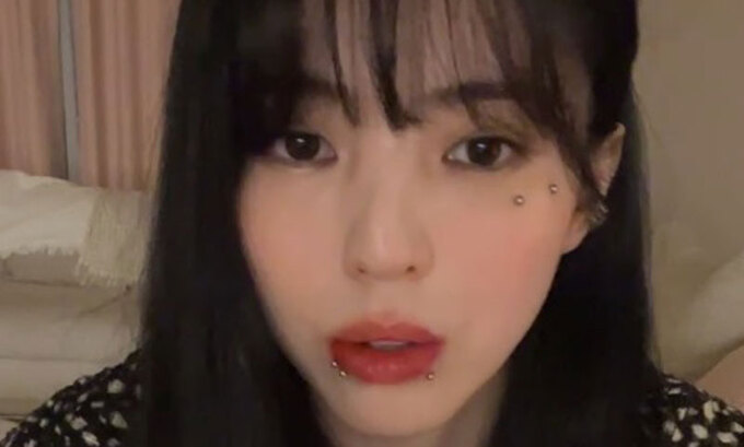 최근 입술에 피어싱을 한 사실을 공개해 화제가 된 한소희. 그는 라이브 방송을 통해 눈 밑에도 두 개의 피어싱을 추가로한 모습을 선보였다.