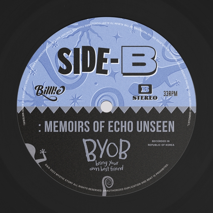 특히, ‘BYOB (bring your own best friend)’는 빌리가 선보여 온 ‘snowy night’(스노이 나이트), ‘팥빙수’ 등과 이어지는 듣기 편한 이지 리스닝 계열의 음악이다. 빌리만의 유니크한 스토리텔링과 사운드 메이킹이 더해져 완성도를 높인 가운데, 영어 버전 트랙도 함께 수록돼 글로벌 팬들과도 밀접히 교감할 전망이다.