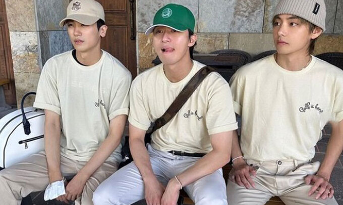 특히 뷔는 배우 박형식, 박서준과 팀 멤버 정국, 지민 등과 찍은 사진을 공개해 눈길을 끈다.