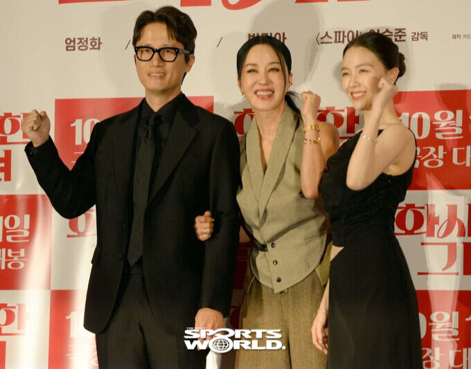 배우 송새벽, 엄정화, 방민아(왼쪽부터)가 5일 CGV용산아이파크몰에서 열린 영화 '화사한그녀' 언론시사및 간담회에 참석 포즈를 취하고 있다.
