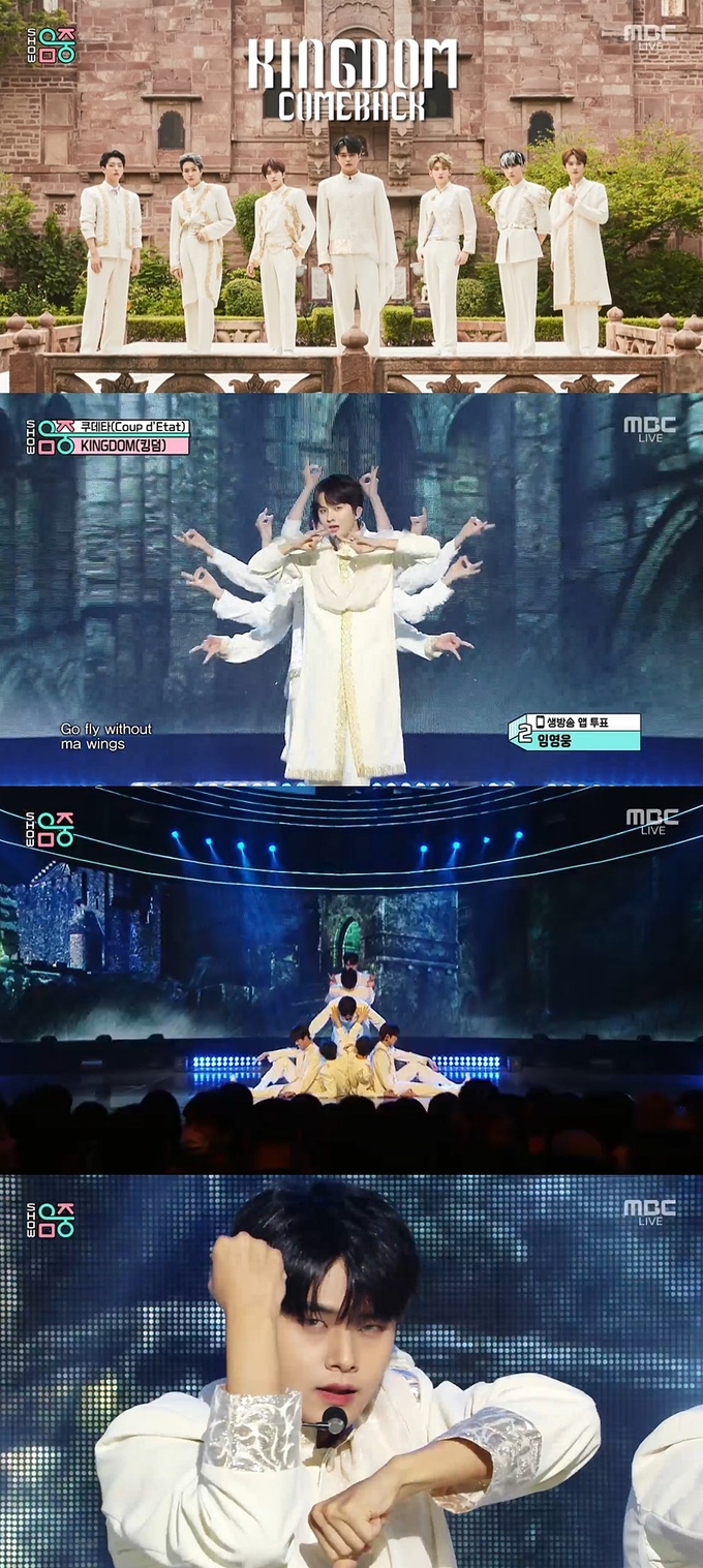 킹덤(단, 아서, 무진, 루이, 아이반, 훤, 자한)은 21일 오후 방송한 MBC '쇼! 음악중심'에 출연해 미니 7집 'History Of Kingdom : Part Ⅶ. JAHAN(히스토리 오브 킹덤 : 파트 7. 자한)'의 타이틀곡 '쿠데타(COUP D'ETAT)' 무대를 선보였다.