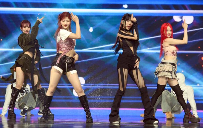 그룹 키스오브라이프(쥴리, 나띠, 벨, 하늘)가 8일 광진구 예스24라이브홀에서 열린 두 번째 미니 앨범 ‘Born to be XX’ 발매기념 쇼케이스에서 열창하고 있다.