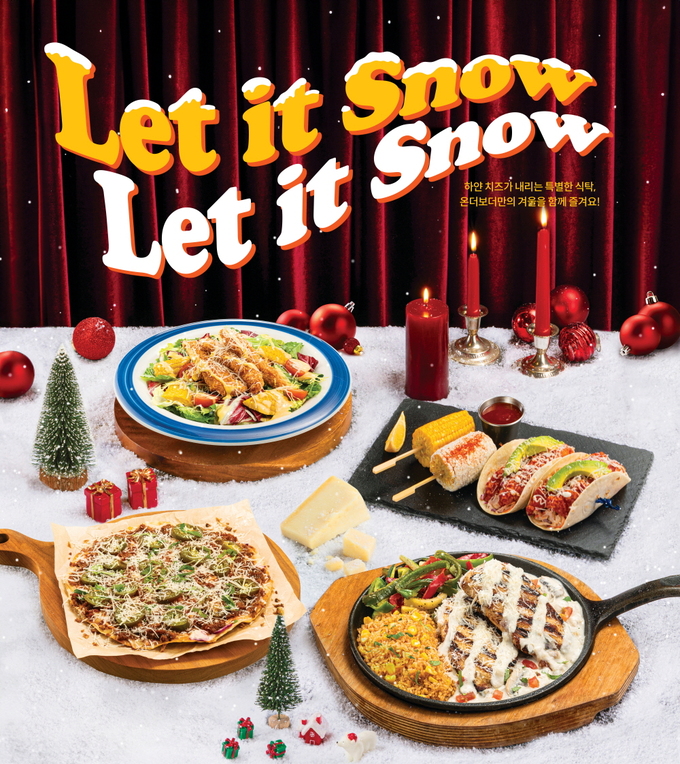 브랜드에 따르면 온더보더의 겨울 시즌 메뉴는 ‘Let it Snow, Let it Snow’, ‘흰 눈이 내리는 특별한 식탁, 온더보더만의 겨울을 함께 즐겨요!’라는 슬로건 아래 보더 텐더 샐러드, 멕시칸 핫 칠리 타코, 오픈 퀘사디아 풀드포크, 스노우 치킨 스테이크를 선보인다.