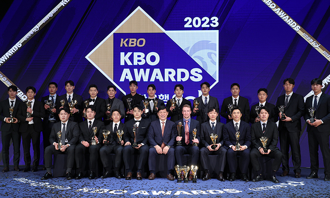 풍성한 수확의 계절이다. 27일 서울 웨스틴조선호텔에서 ‘2023 신한은행 SOL(쏠) KBO 시상식’이 열렸다. 한 시즌 구슬땀을 흘린 선수들이 한 자리에 모였다. 익숙한 유니폼 대신 말끔한 정장 차림이었다. 각 부문 타이틀 홀더와 함께 최우수선수(MVP), 신인왕 등이 공개됐다. 올해부턴 수비상이 신설돼 큰 관심을 모았다. 관계자들뿐 아니라 선수들의 가족, 팬 등도 현장을 찾았다. 한 명 한 명 수상자의 이름이 발표될 때마다 뜨거운 박수와 함성소리가 쏟아졌다.