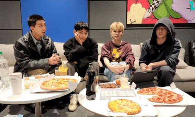 5일 RM, 지민, 뷔, 정국은 글로벌 팬 커뮤니티 플랫폼 위버스에서 단체 라이브 방송을 진행했다.