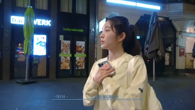 영상 속 아이린은 “감자튀김 사러 갈 거예요”라며 길을 나섰다. 그는 “근데 나 사실 감자튀김 이렇게 많이 좋아하지 않는데, 그리고 나 감자튀김 너무 많이 먹었어”라며 쑥스러워했다. 아이린은 “베를린에서도 감자튀김 먹고 감자튀김 하루에 막 두 번씩 먹고”라며 “나 이 정도까지 막 감자튀김을 사랑하지는 않는데”라고 했다.