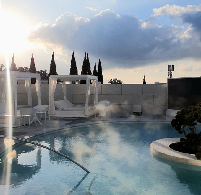 뿐만 아니라 야외 인피니티 풀과 이어지는 실내 수영장과 수영장 옆에 위치한 스낵바에서는 군침 도는 다양한 스낵과 음료가 준비돼 있어 맛있는 휴식이 가능하다고. 현재 내년 2월까지 야외온수풀에서 군고구마와 어묵을 무료로 제공하는 해피아워를 진행중이다.