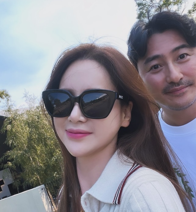 공개된 사진은 남편 안정환과 찍은 그의 셀카. 다정하게 포즈를 취하며 미소 짓는 두 사람의 모습이 시선을 모은다.