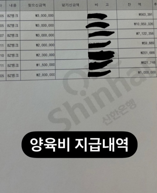전 쇼트트랙 국가대표 김동성의 아내 인민정 씨가 남편의 전처에게 보낸 양육비 지급 내역을 공개했다.