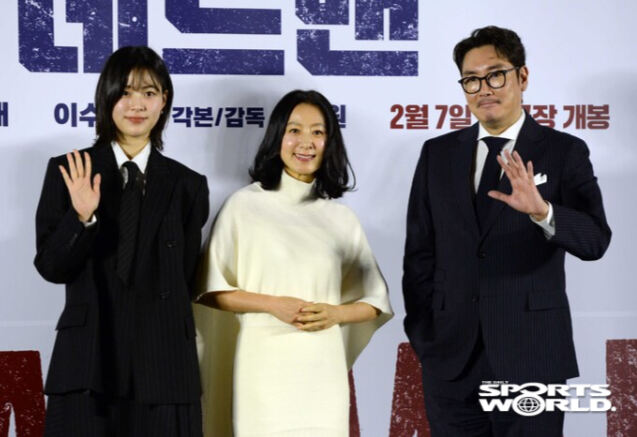 배우 이수경, 김희애, 조진웅이 19일 메가박스 성수점에서 열린 영화 '데드맨' 제작발표회에 참석하고 있다.