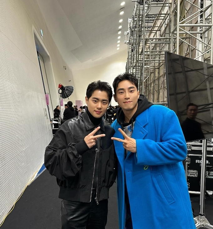 ‘피지컬 100’에 출연한 보디빌더 성치현이 배우 조병규와 그리디어스 패션쇼에서 함께한 인증샷을 공개했다.