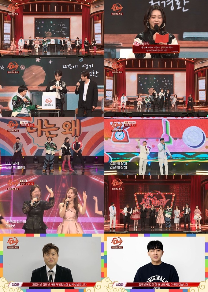 이후 ‘히트곡 메들리’가 이어졌다. 특히 허경환-영기-김선근 아나운서는 무한궤도의 ‘그대에게’, 문희경-정다경은 ‘하늬바람’, 허경환-홍지윤은 철이와 미애의 ‘너는 왜’, 김승현-박군은 ‘있을 때 잘해’, 금잔디-정다경은 ‘인생샷’ 등 다양한 콜라보 무대로 풍성한 볼거리와 다양한 즐거움으로 설날 분위기를 느낄 수 있는 공연을 만들었다.