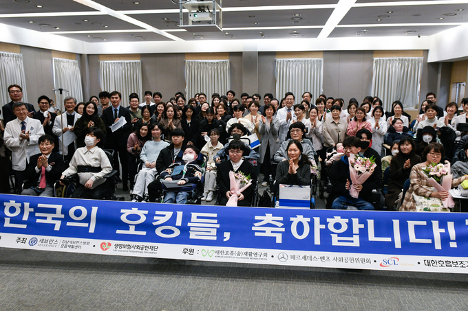 연세대 강남세브란스병원 호흡재활센터가 최근 병원 중강당에서 ‘한국의 호킹들, 축하합니다!’ 행사를 열고 사지마비와 호흡장애를 넘어 대학 입학과 졸업을 맞은 8명의 입학생과 5명의 졸업생을 축하했다.