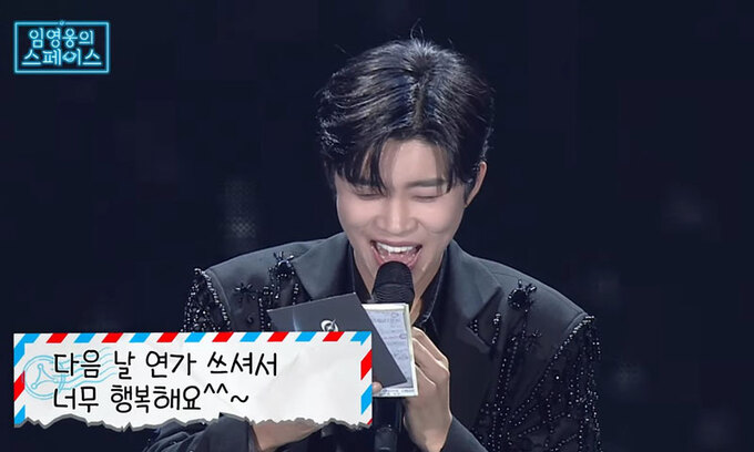 사연을 다 읽은 뒤 임영웅은 이날의 낭독 시간을 마무리하며 “아까 생일이신 분 계시던데 생일 축하드립니다”라고 축하 인사를 건넸다. 이에 더해 “저 뒤에도 아까 와이프가 생일이라고 막 그랬던 거 같은데 축하드리고요. 앞에도 여기도 예 진심으로 축하드리겠습니다”라며 두루두루 팬을 챙기는 모습을 보였다.