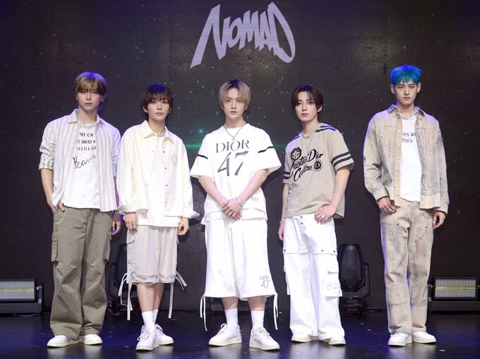 그룹 노매드(도의, 상하, 원, 리버, 준호)가 28일 강남구 성암 아트홀에서 열린 데뷔 EP 'NOMAD' 발매기념 쇼케이스에 참석하고 있다.