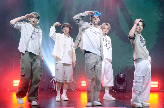 그룹 노매드(도의, 상하, 원, 리버, 준호)가 28일 강남구 성암 아트홀에서 열린 데뷔 EP 'NOMAD' 발매기념 쇼케이스에서 열창하고 있다.