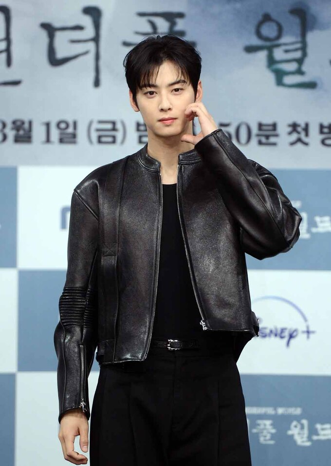 배우 차은우가 29일 상암 MBC 골든마우스홀에서 열린 MBC 금토드라마'원더플 월드' 제작발표회에 참석하고 있다.