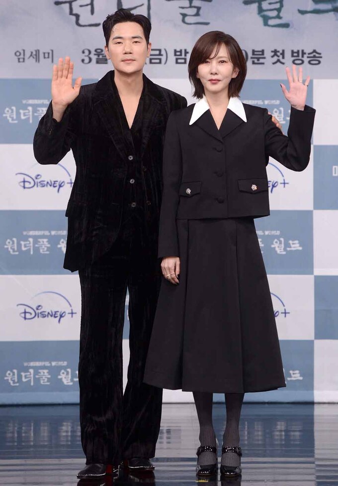 배우 김강우(왼쪽)와 김남주가 29일 상암 MBC 골든마우스홀에서 열린 MBC 금토드라마'원더플 월드' 제작발표회에 참석하고 있다.